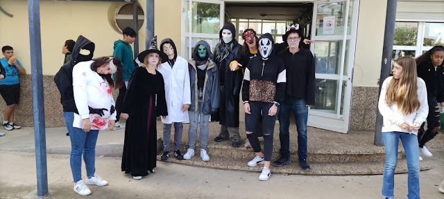 Según nos informan, en las siguientes fotos podréis encontrar desde profesores y un alumno disfrazados, pasando por una actividad de geólogos muertos, lámparas de lava, un espantapájaros para el huerto realizado por alumnado del ciclo de Educación Infantil y hasta un muñeco muy apropiado para la ocasión, hecho por un alumno del Bachillerato de Artes.